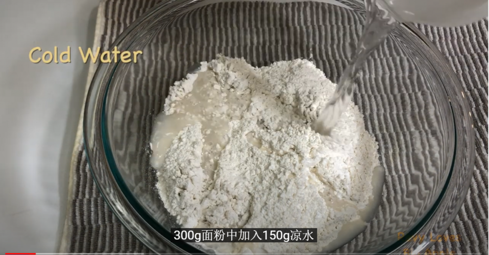 1) 面皮: 中筋面粉:300g 凉水:150g