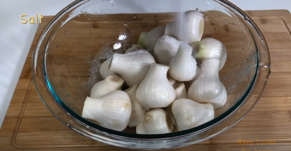 清洗干净后,撒上食盐,加清水,浸泡24小时,中间换一次水。换水的时候就不需要再加盐了。
