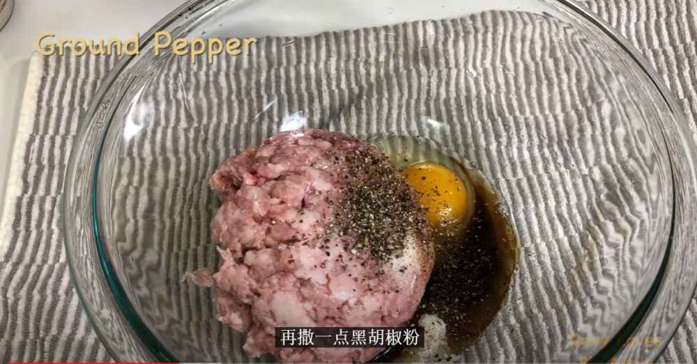 2) 馅料: 猪碎肉:400g 中芹:一把,只需要茎 小葱:两根 鸡蛋:一个 盐:1.5小勺 糖:1大勺 酱油:1大勺 香油:1大勺 黑胡椒粉:适量 水:60ml
