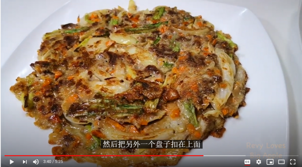 然后面糊倒入锅中,摊平,每面各煎5分钟左右