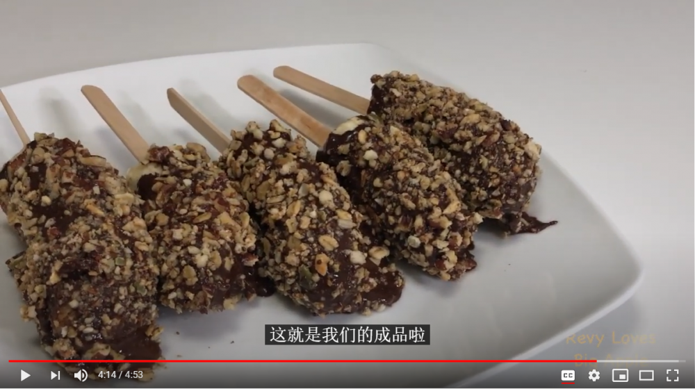 材料: 香蕉 核桃 早餐谷物 黑巧克力 杏仁酱 小木棍