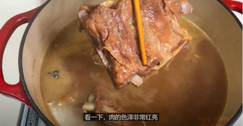 4)炖煮一个半小时就好了,出锅后色泽红亮,香而不腻,非常诱人.