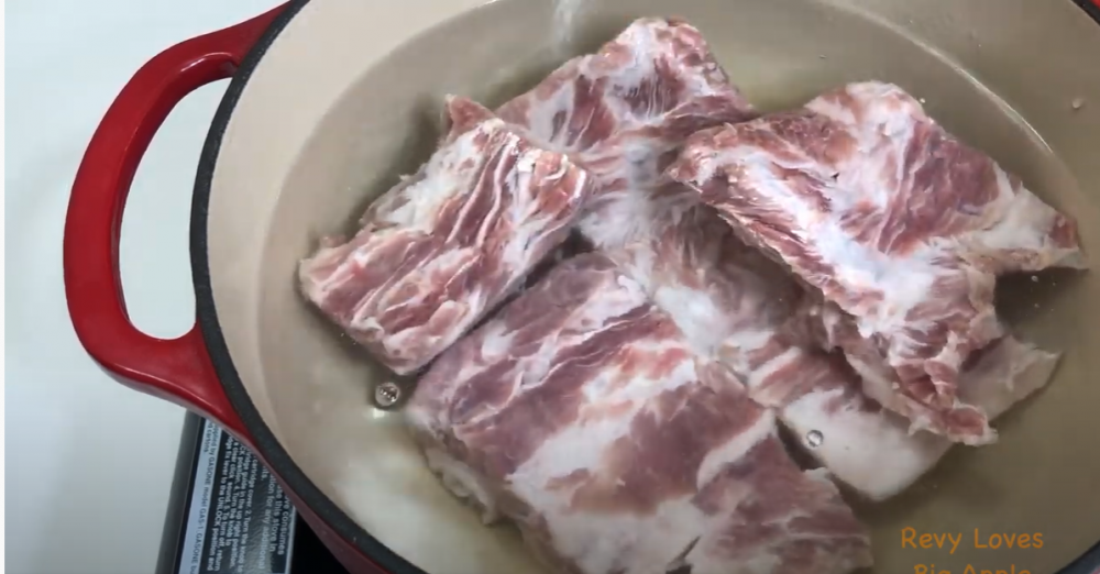 1)焯水去浮沫。酱骨头可以用各种部位,我买肉的农场猪颈骨不错,肥瘦相间,我这次就用它了。