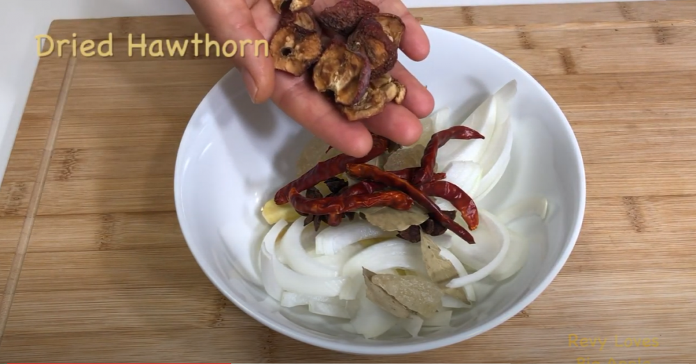 材料: 猪颈骨:五大块(也可以用脊骨,棒骨等) 姜:几片 洋葱:半个 八角:3个 香叶:3片 冰糖:4块 干辣椒:一把 干山楂片:一把 酱油:4大勺 黄豆酱:4大勺 熟黄豆:一把