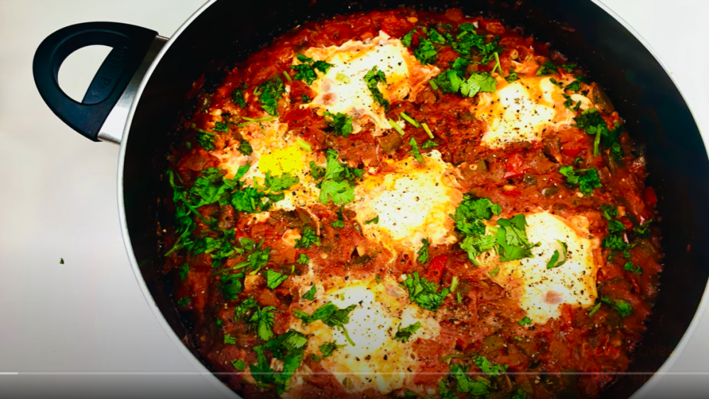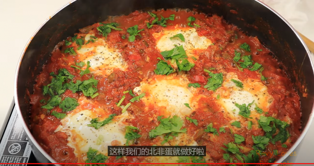 北非蛋是中东地区常见的早餐之一。就是把营养价值很高的番茄,青椒,洋葱,鸡蛋等一锅炖煮。再辅以各种香料调味。好吃又健康。这道在欧美地区的早午餐中也很常见,搭配上欧式面包,用面包沾着酱汁吃,美味极了。当然也可以搭配意大利面和奶酪,一样特别好吃。 这道菜不仅好吃,而且做法简单,一锅就可以完成一家人的早餐。所以在周末的早上,做上这样一锅好吃的料理,和家人一起享受,是非常惬意的事情。