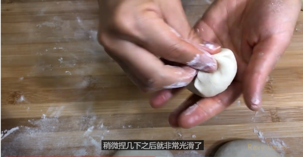 3)整理剂子:含有油的面团是特别好整理的。从四周向中间捏几下,就光滑了。其实这也是stretch and fold的方法,在面包中也很常见。这一点无论中西可谓异曲同工。