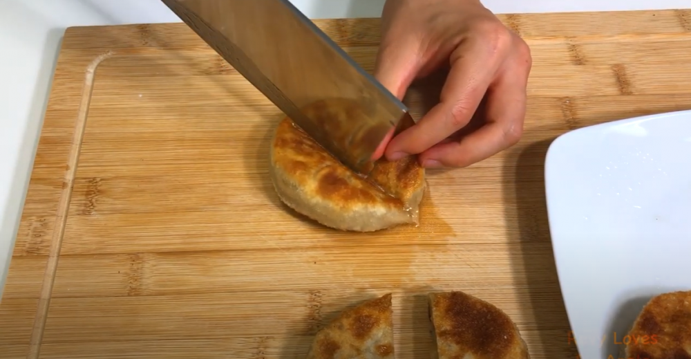 6)做好的馅饼一切,就流了一菜板的汁水,爆汁的馅饼特别的香:)