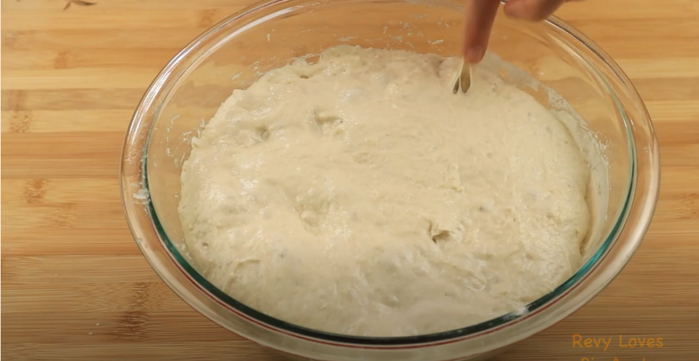1)我的面团含水量是75%, 室温发了一个小时放入冰箱,第二天早上,面团上都是可爱的大泡泡。