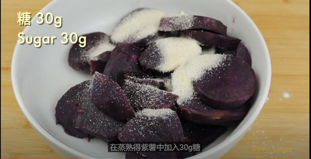 材料: 紫薯:400g 糖:30g 铁棍山药:400g 糖:45g 糯米粉:2Tbsp
