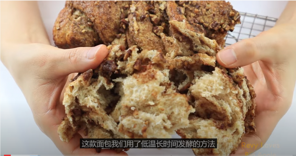 冬天啦,来款山核桃肉桂面包,吃完了暖暖的。 这款面包用了低温长时间发酵的方法,虽然用了部分全麦面粉,但是做出的成品特别的松软。麦香混着核桃和肉桂香,让人欲罢不能:)