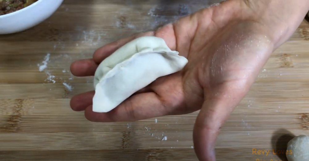 5)我的家乡流行元宝形包法,这种包法边缘小,不会有太多的皮,可以把皮薄馅大再发挥的更好一些哈