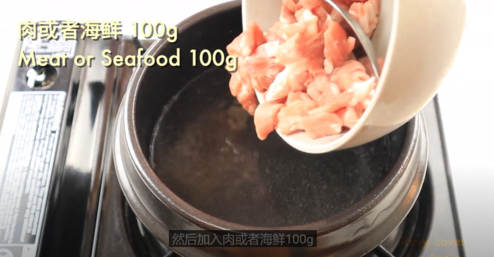 豆腐:1 盒 ; 水或者高汤:1 杯 或者250ml ;肉或者海鲜:100g; 鸡蛋:一个