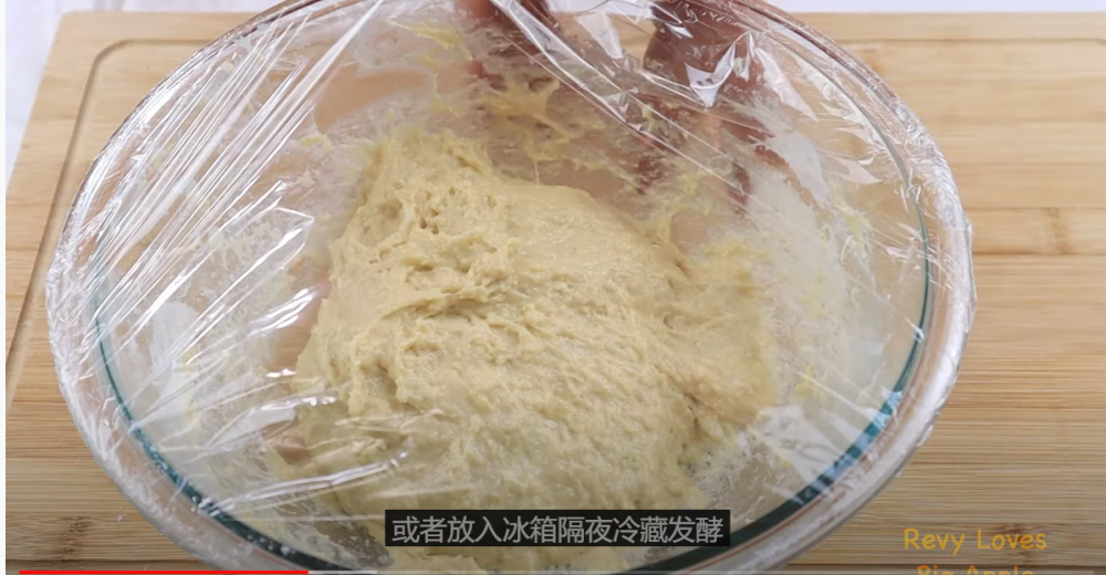 这款面团里的含水量大,我采取的是冷藏发酵法,在冰箱长时间发酵过的面团,组织更加的细腻松软,而且不太粘手,更好操作。