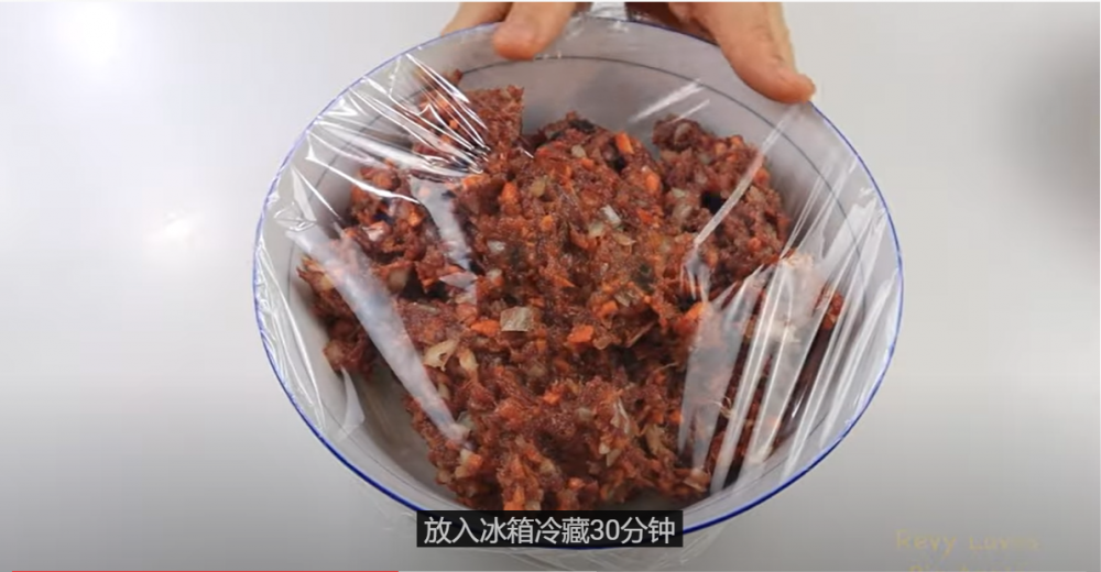 1)先来调肉馅,把肉馅和调料先搅拌上劲成粘稠状,然后加入洋葱和或萝卜,搅拌均匀,之后放入冰箱冷藏拌个小时。让味道充分混合。