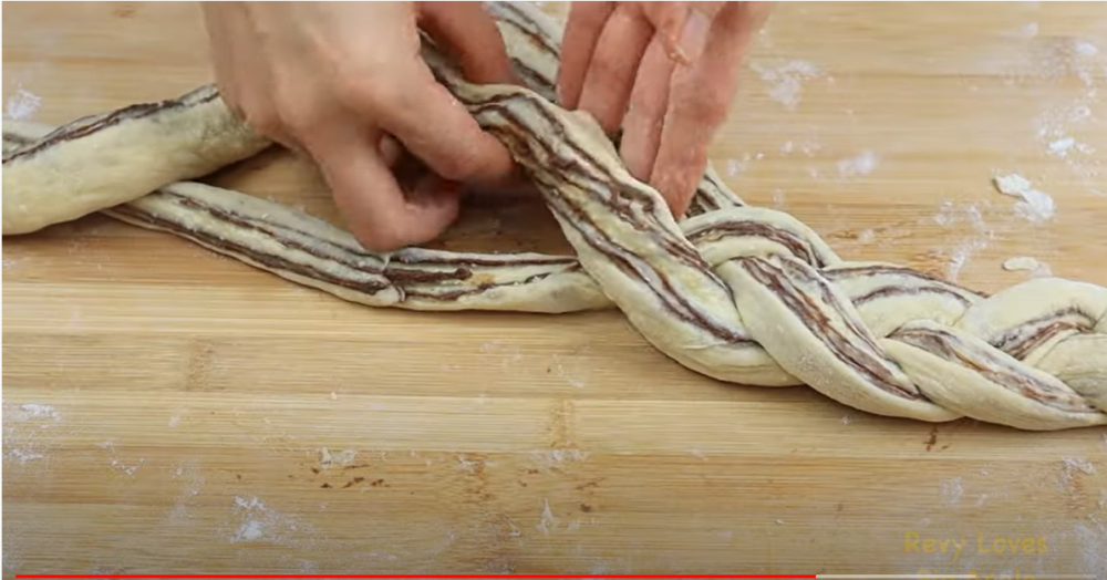 4)卷起来,用手稍微压扁,切成三条,顶部不要切断。