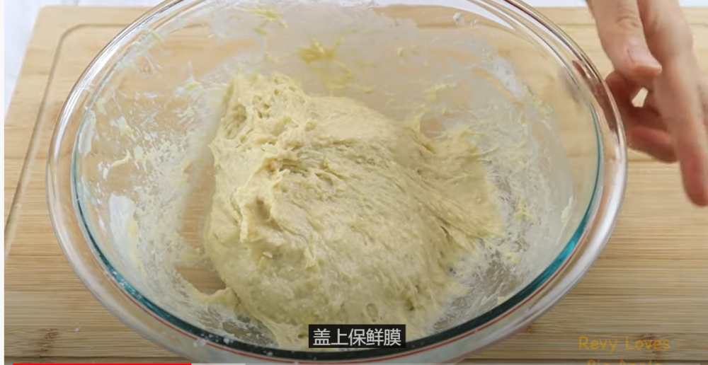 1)发面。按照惯例,把除了黄油以外的所有材料混合,先静置30分钟,让面团有个基础的发酵,然后放入黄油,搅拌均匀,放入冰箱隔夜冷藏发酵。