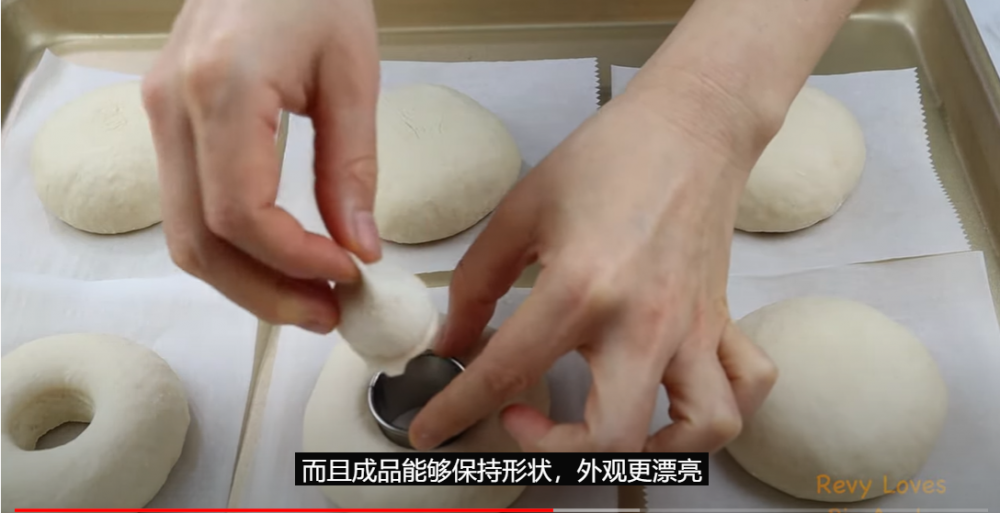 贝果(bagel)是美国东北部很流行的早餐,它吃起来口感扎实有嚼劲,早餐吃一个贝果,涂上奶油奶酪,再配上火腿或者烟熏三文鱼,一上午都元气满满。今天和大家分享一个贝果非常简单的做法, 不用机器,手揉五分钟即可。 整形我们则用圆形的工具辅助,既简单快捷又能保证成品漂亮形状好。