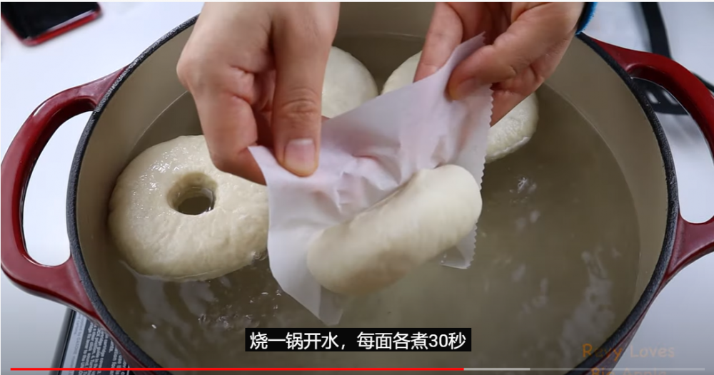 7)烧一锅开水,把bagel放入,每面各煮30秒