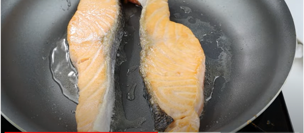 2)锅中倒油,三文鱼放入锅中,每面各煎2分钟,如果三文鱼比较厚,担心中间煎不熟的话,可以盖上盖子煎。煎好后盛出备用。