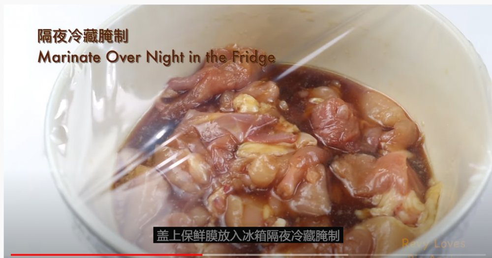 1)把鸡腿肉切小块,放入所有的调料,搅拌均匀后放入冰箱冷藏腌制。