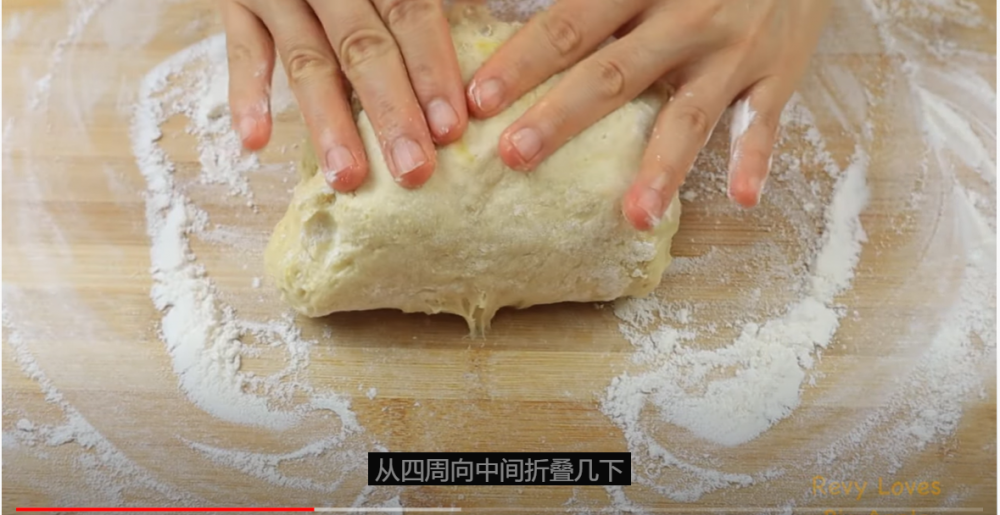 3)每一份继续从四周向中间折叠,整理成一个圆形的面包坯,之后松弛15分钟
