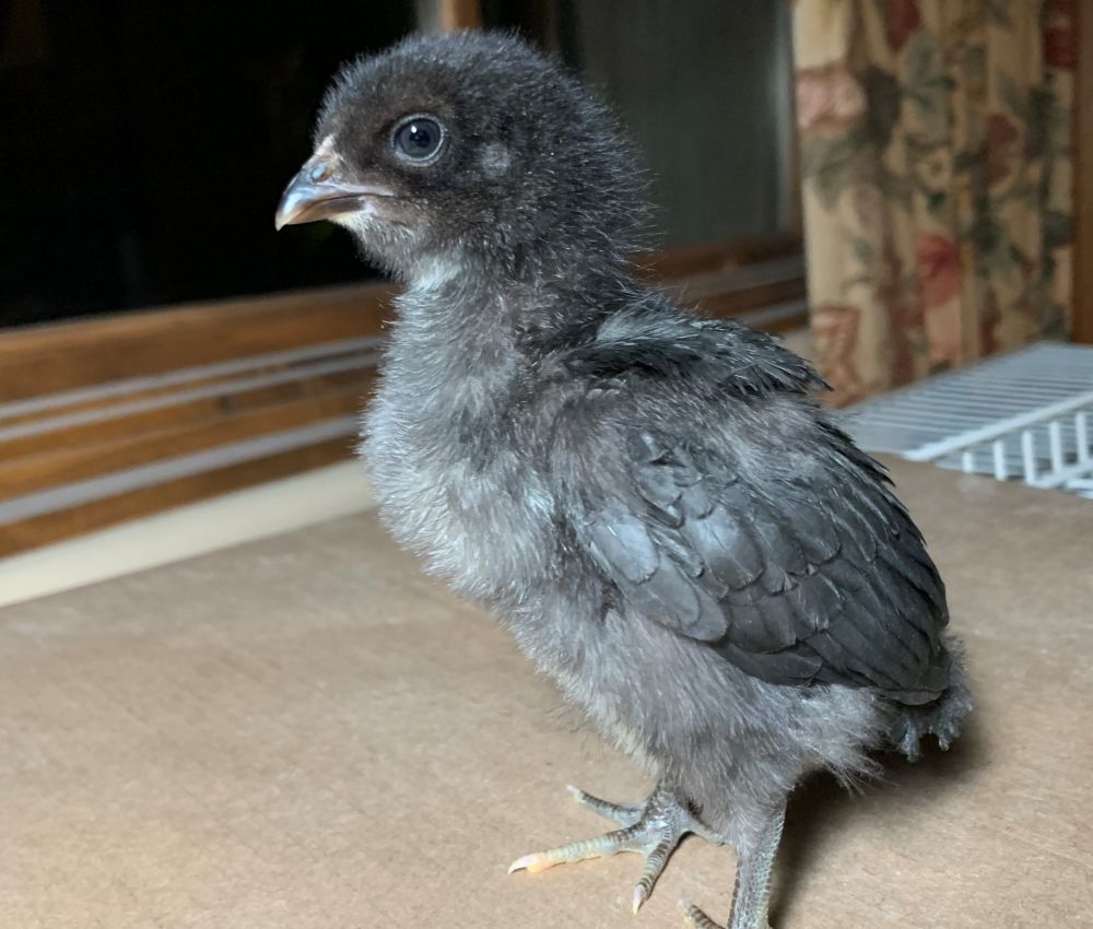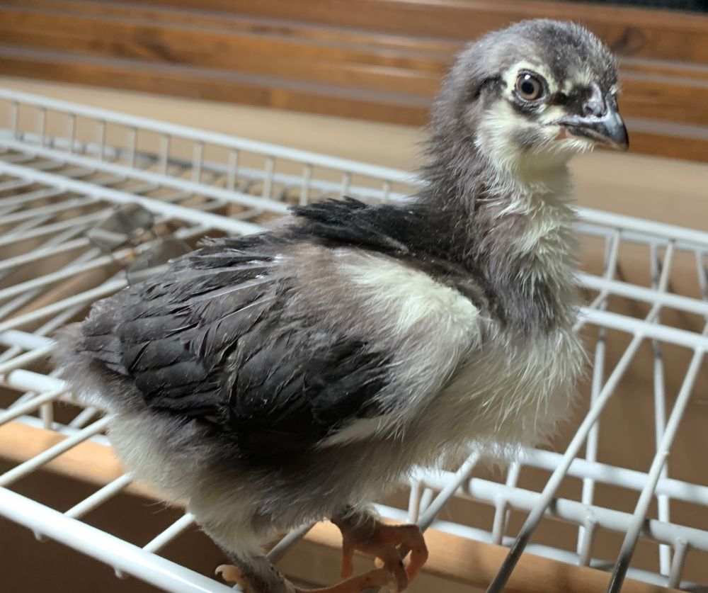 这只最先出壳的小黑,翅膀长了些羽毛,但尾巴还没有: