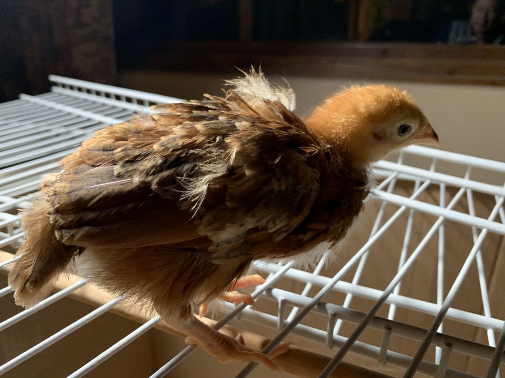 其他小母鸡发育良好。 这只 Rhode Island Red:
