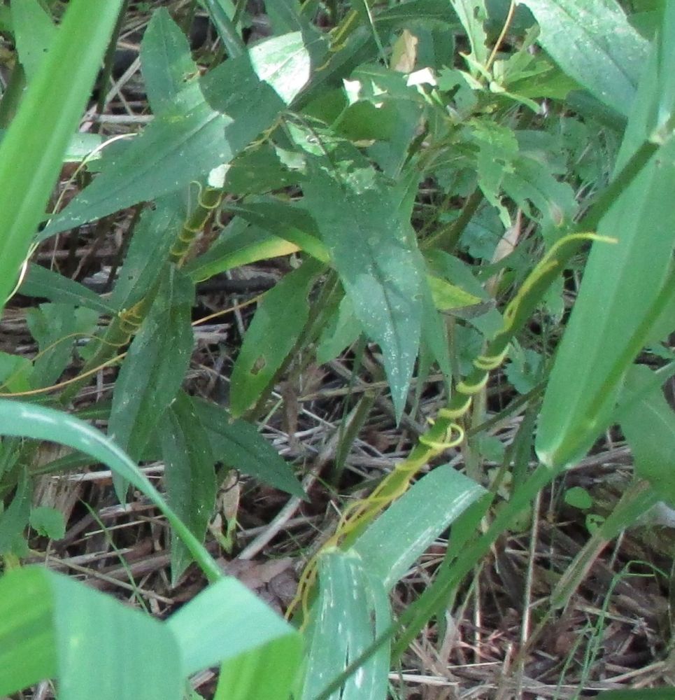 野生菟丝子常见于平原、荒地、地边以及豆科、菊科、寥科、蘸科等植物地内。遇到适宜寄主就缠绕在上面,在接触处形成吸根伸入寄主,自寄主吸取养分和水分。