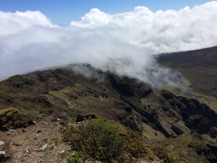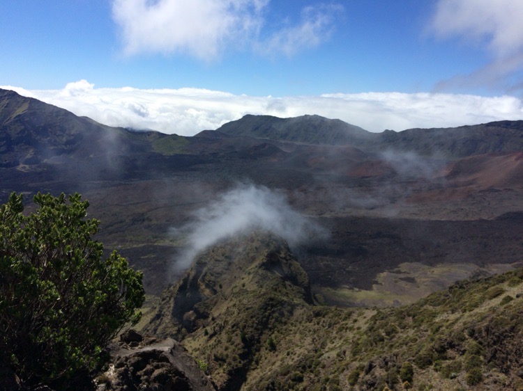 Haleakala 国家公园位于Maui的岛上,是1916年火山爆发形成的。1961年变成国家公园。Haleakala的意思是“大阳的房子”(一house of the sun)是死火山。我们一直开到山顶,山顶的风真大,温度很低,所有带的厚衣服围巾都包在身上仍然感到冷。因该公园是火山形成的,所以有一些独特的风景。