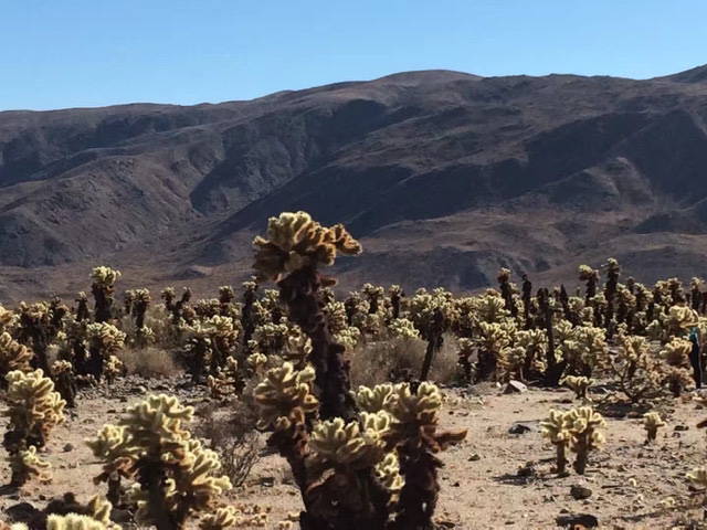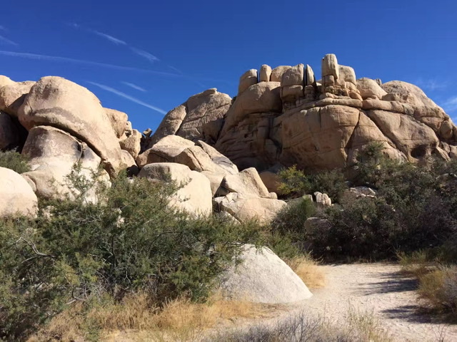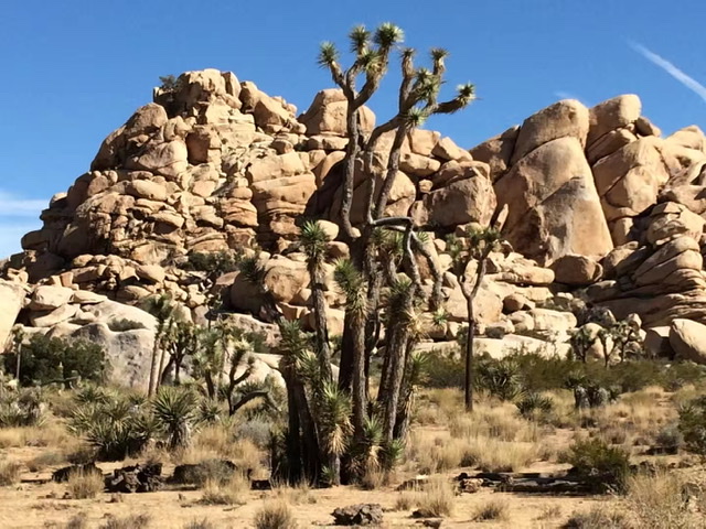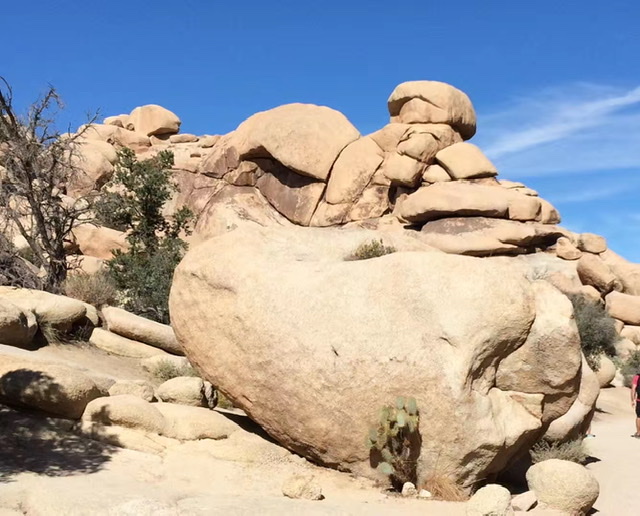 如果你曾经读过Dr. Seuss的书,当你第一次走进这个公园,你会误以为走进了Dr. Seuss的书中,因书中画的东倒西歪的树都真实的呈现在你的眼前。Joshua tree可以生长150年,能够长到40 feet高。除了Jashua Tree, 在这贫瘠的沙漠地形里,一群群特殊有個性的石头装饰了大地, 到处可见各式各样形状奇怪的岩石。这里是攀岩好手热爱的地方,这一带的夜空也特别黑暗,所以也是天文爱好者的天堂。但因为疫情,园内宿营地都关闭了,也就不可能停留在园区内看星星看月亮了。