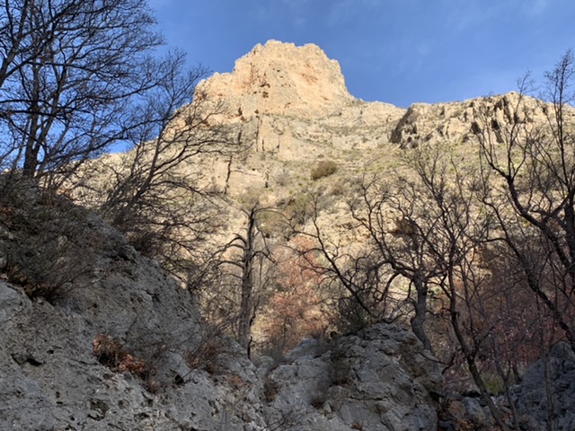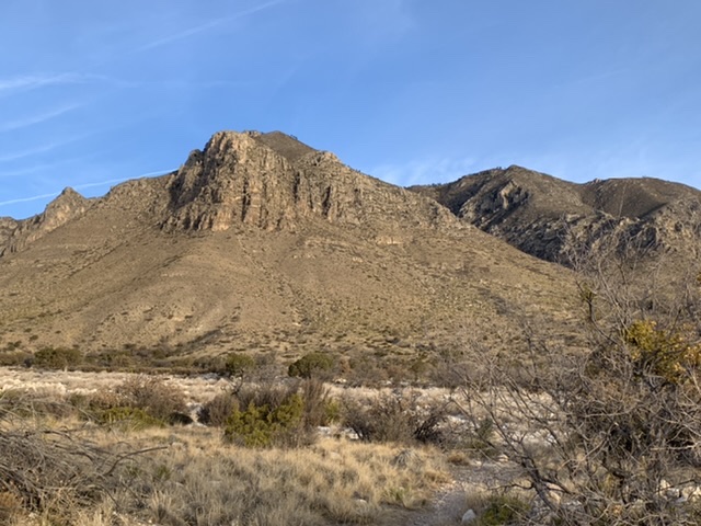 德克萨斯州一共有两个国家公园,Big Bend National Park 和瓜达洛普山国家公园(Guadalupe Mountains National Park)。 曾经去过Big Bend好几次,但一直没有机会来Guadalup Mountains。这次回来正好路过,就不想错过这个机会,于是当晚在Van Hore住了下来。这个小城离公园大约开车一小时。第二天天还没亮,我们就出发了,还未进公园就看到El Captain山,刚刚升起的太阳正好柔柔的照在山峰上,呈现出一层红色的薄雾,非常状观。