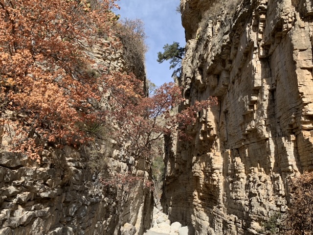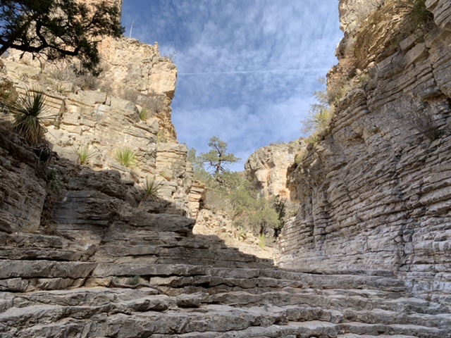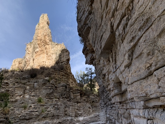 这个公园也是地质学家钟爱之处。这里在远古时候(两亿五千万年前)是一片内陆海,曾经满是珊瑚礁。后来随着气候变化,内陆海逐渐蒸发消失,让这些珊瑚暴露于地表并随着时间推移逐渐被掩埋入地下,直至一千两百万年前的地质运动又让它们在瓜达洛普山脉的形成过程中被抬升出地表。今天我们所能见到的峡谷则又是在几百万年风和水的共同作用下逐渐形成的。