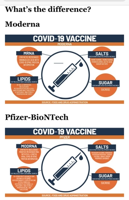 Moderna和Pfizer COVID-19 疫苗都含有四个部分:mRNA,脂质,盐和糖。