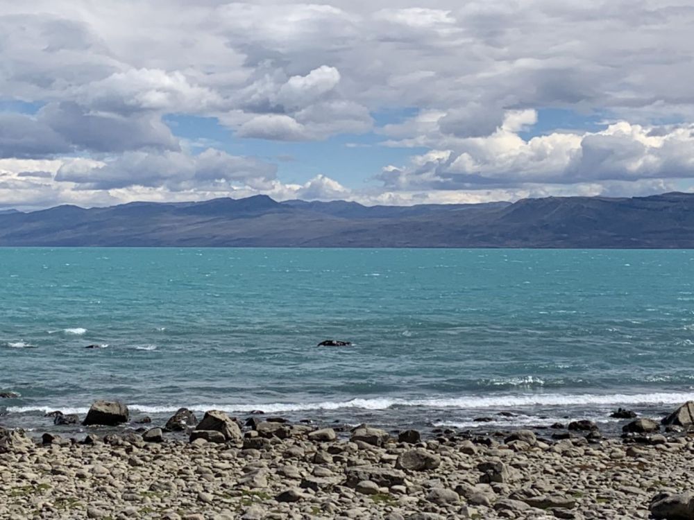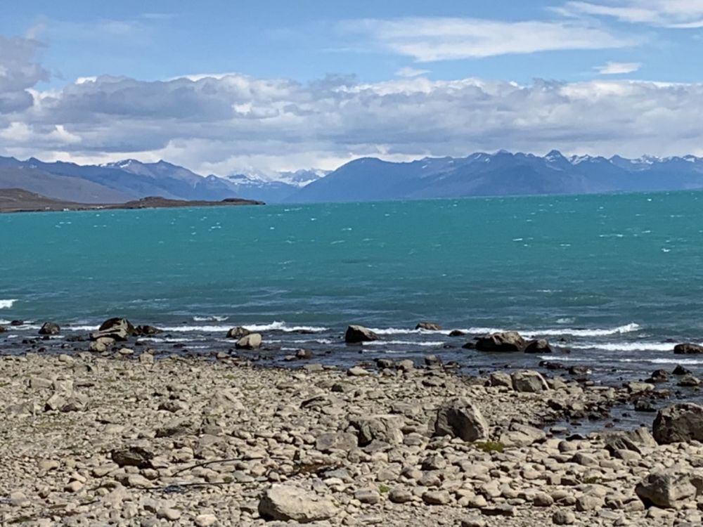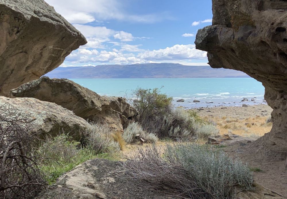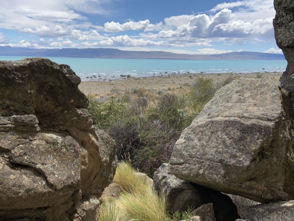 离阿根庭旅游城市EI Calafate 10公里是Punta Walichu,这是一个有多个巨大岩石和石洞组成的具有历史和考古意义的地方,有一些早期人类的印迹。因它就在湖边,面对阿根庭湖,风景优美。那天天气很好,静静地坐在湖边的石头上欣赏,慢慢地在湖边散步观察湖水颜色的变化。