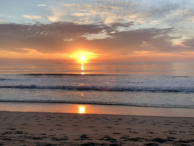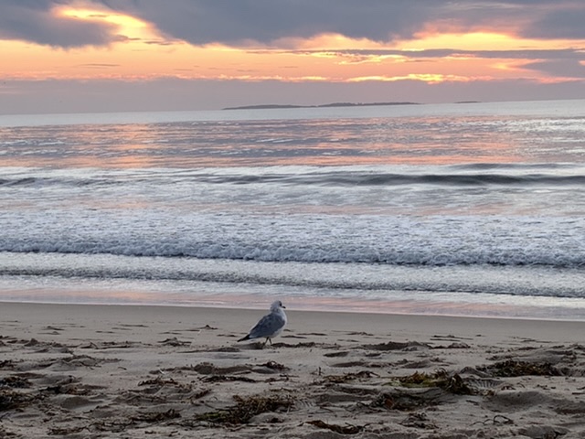 住在Old Orchard Beach, 一个海边小城。旅馆就在海滩上,从住的房间走两分钟就是海边,傍晚静静的坐在海滩上,听着浪涛,看太阳一点点地落下,享受燃烧着的晚霞。早上起来看太阳一点点升起,欣赏海面上的第一束阳光。