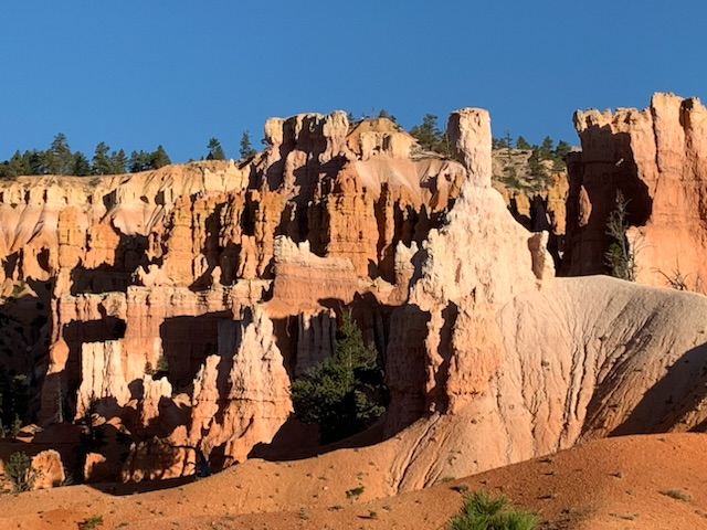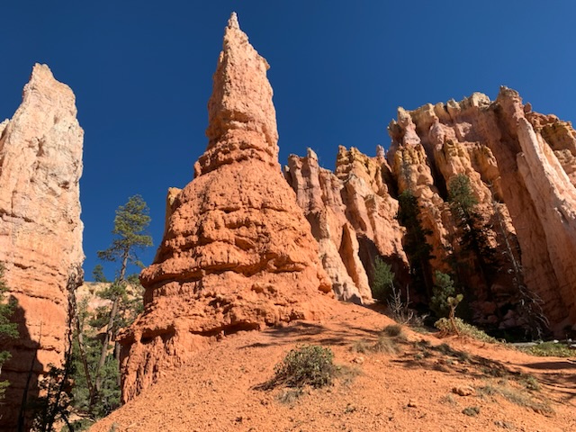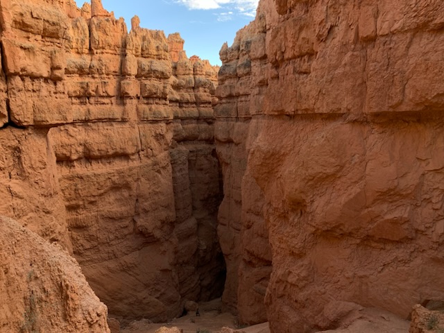 布萊斯峽谷國家公园是一个狹長型园区,大部分的景点都位于主要道路旁,基本上停好車走一小段路就到观景台了,当然也有好几条徒步路线。Navajo Loop Trail 从Sunset Point开始环行的路线共2.1公里,可以走进Wall Street。Wall Street由矗立的岩壁形成一条狹窄的通道,遊客穿梭在其中显的非常渺小,从sunset point 往下看,人就像一个个小蚂蚁。