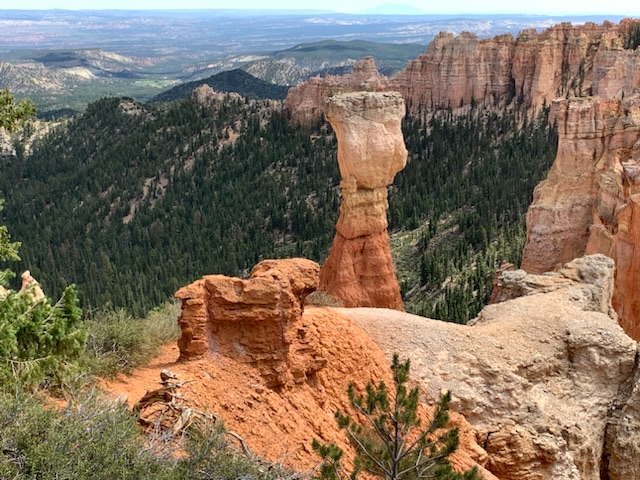 Rainbow Point为公园內海拔最高的一个观景台,Natural Bridge是布萊斯峽谷著名的景色之一,大自然的鬼斧神工打造出這個天然的拱门,三十年来仍然记忆犹新。到Inspiration Point就可以看到露天剧场了,一整片的Hoodoos看上去真的非常壮观。Agua Canyon有两个特别的Hoodoos, 右边高的是“猎人”,左边低的是“野兔“。当太阳落山时,站在Sunset Point看着这自然露天剧场里成千上万的披着橘红金光的岩柱(Hoodoos),真的感叹大自然的神奇。