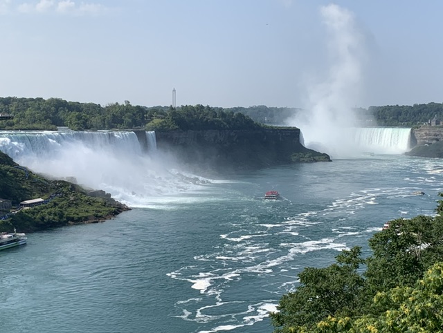 我们的加拿大东部之旅从多伦多(Toronto)出发,首先去了尼亚加拉大瀑布(Niagara Falls)。这是加拿大最著名的自然奇迹之一,位于安大略省的尼亚加拉市。这个壮观的景点包括三个瀑布:美国瀑布、布里达尔维尔瀑布和加拿大瀑布,共同组成了令人惊叹的景象。