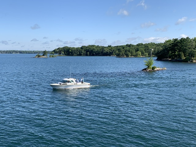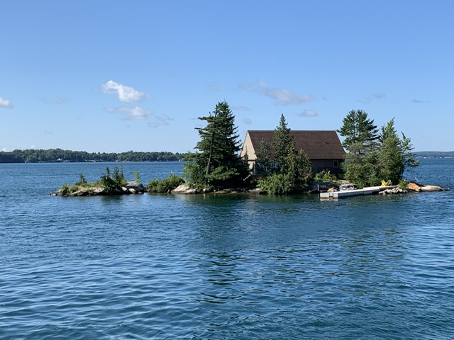 千岛湖(Thousand Islands)位于加拿大安大略省与美国纽约州之间的圣劳伦斯河上,是一个迷人的水域景观。尽管名字叫做“千岛湖”,但实际上湖区内有1864个岛屿,大小不一,形态各异。按规定要想被认定为岛屿,这个岛必须全年露出水面,面积大于0.093平方米,并且至少有一棵活树。