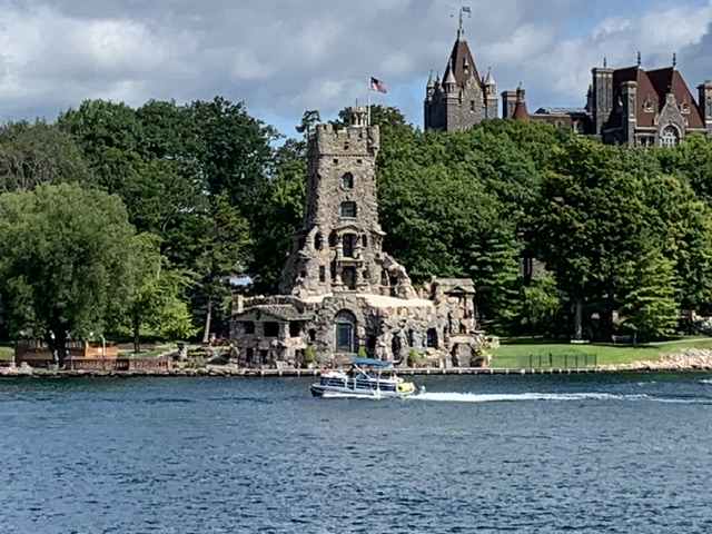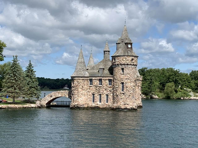 其中一座著名的城堡是位于哈特岛上的千岛城堡(Boldt Castle),它是一座19世纪建筑,具有浪漫的欧洲风格,吸引着众多游客前来参观。游客可以在城堡内外欣赏美丽的建筑和花园景观。