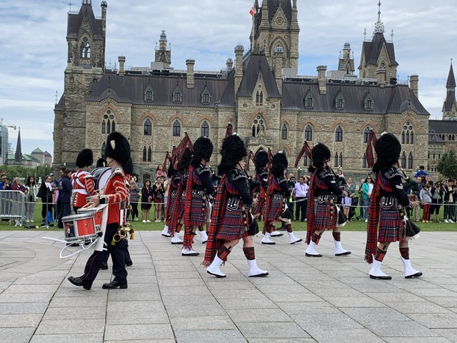 渥太华(Ottawa)是加拿大的首都,以其独特的文化和历史景观而闻名。"卫队交接仪式"(Change of the Guard)是渥太华夏季期间的一项受欢迎的仪式,吸引了成千上万的游客前来观赏。