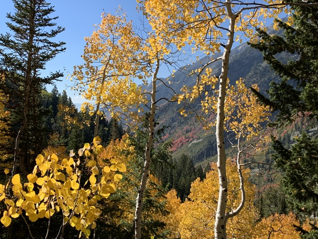 Little Cottonwood Canyon(小棉木峡谷)位于犹他州,离Salt Lake City 开车45分钟,以其令人叹为观止的秋季色彩而闻名。在秋天,峡谷里的景色变得生动多彩。aspen tree(白杨树)的叶子变成了金黄色和淡黄色,穿插一些枫树的红叶,与峡谷周围崎岖的花岗岩峭壁形成了鲜明的对比。