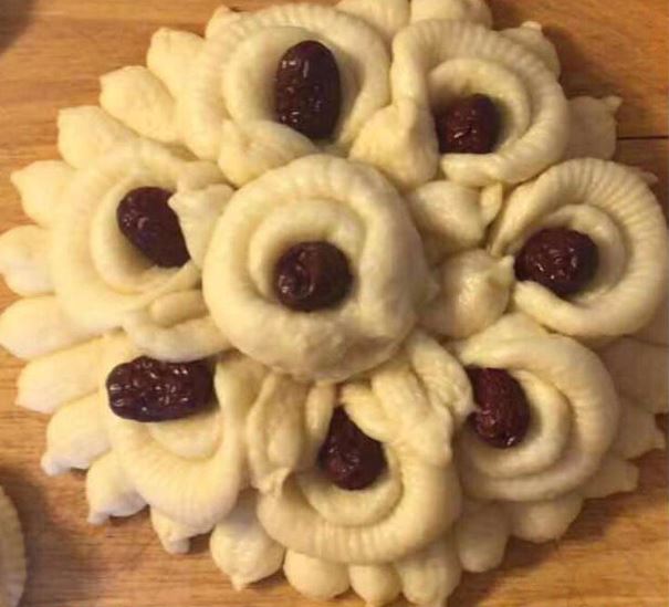 两道面食:枣花馍+香葱鸡蛋烙薄饼