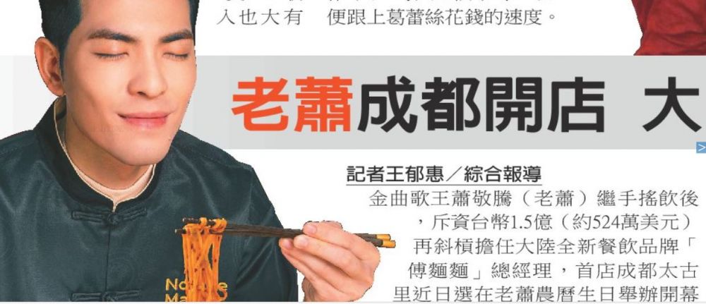 萧敬腾成都开面店,去吃一碗吗?