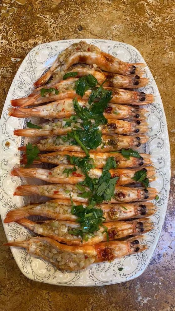 蒜蓉大虾+酸菜炒鱿鱼=美味谢恩