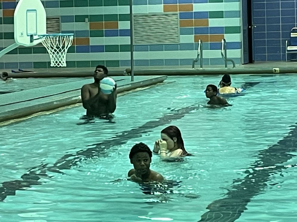 景二:12岁左右矮胖小白女孩,跟4个高矮黑男孩一起来池里,搂搂抱抱,我替她妈妈担心啊!美国是开放,但看起来就是那么怪啊!