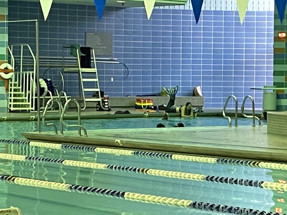 景三:角落里有5条美人鱼,只有一条在池边,其它的鱼都在水里游呢!
