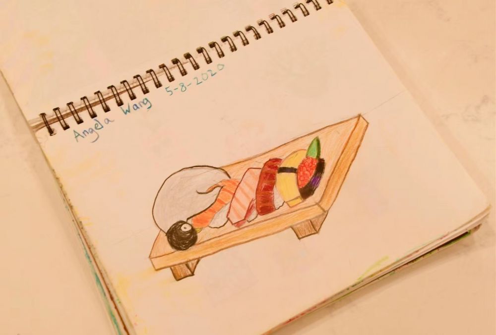 她拉琴好,画画也好,高兴看小才女创作,画壽司美丽。。。。