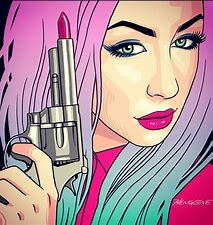 那广告的画面如是:一金髪蓝眼,着西部牛仔裤和夹克的美国美女,出现在萤光幕前,丛容把手枪从腰上挂的皮夹子里掏出,举枪对着观众,然后,才打开手枪的子弹夹,掏出一管子弹(口红),往性感的嘴唇上优美的涂上唇膏,1分钟内她没说一句话,一行字幕慢慢出现在下面:女人的武器---蜜司佛陀。