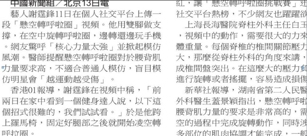 谢霆锋,旋空转呼拉圈,健身还是伤身?